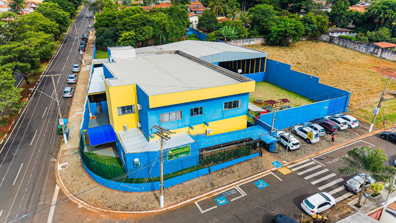 A nova unidade conta com área verde, quadra poliesportiva coberta, playground, acessibilidade, auditório, espaço administrativo, refeitório, 18 salas de aulas, laboratório e 100% climatizada.